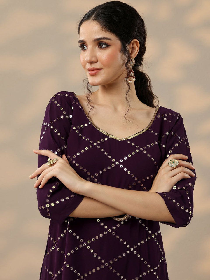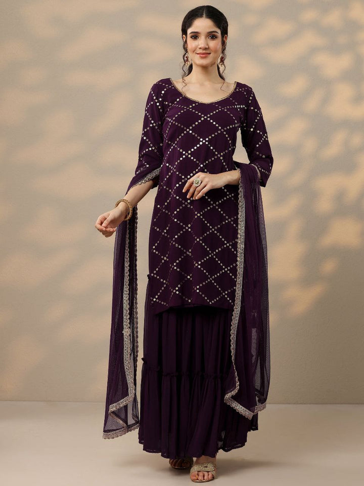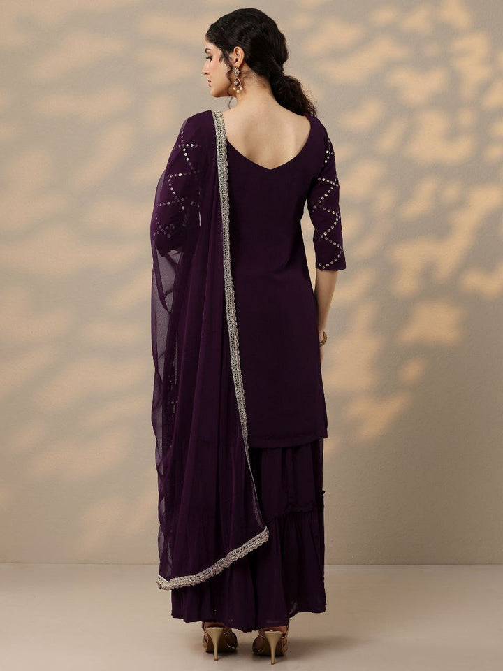 Royal Plum Mirror-Work Kurta Sharara Set with Dupatta