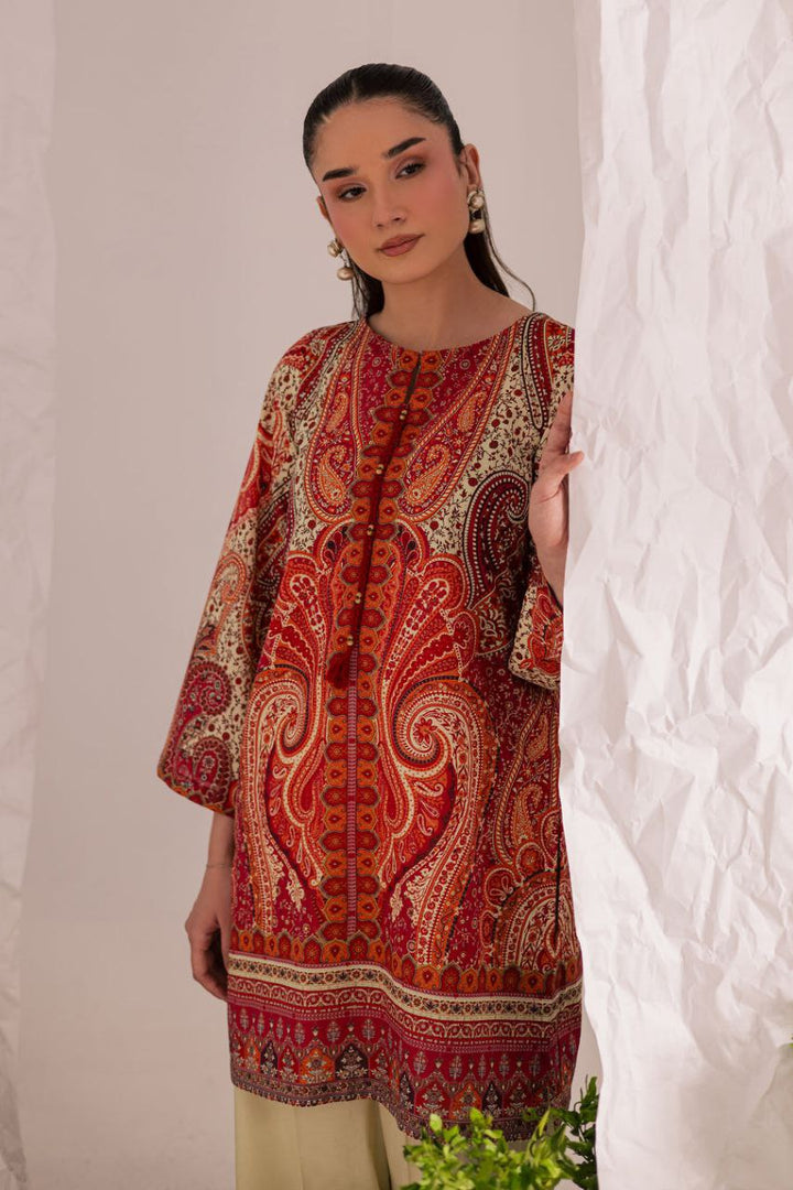 Elevate your ethnic wardrobe with this Rust Red Paisley Co-Ord Set, a perfect blend of tradition and modern style. The kurta features an intricate paisley print with detailed borders and relaxed statement sleeves, paired beautifully with straight cream pants. Made from soft, breathable fabric, this outfit is ideal for festive gatherings, casual outings, or elegant day events. 🌺